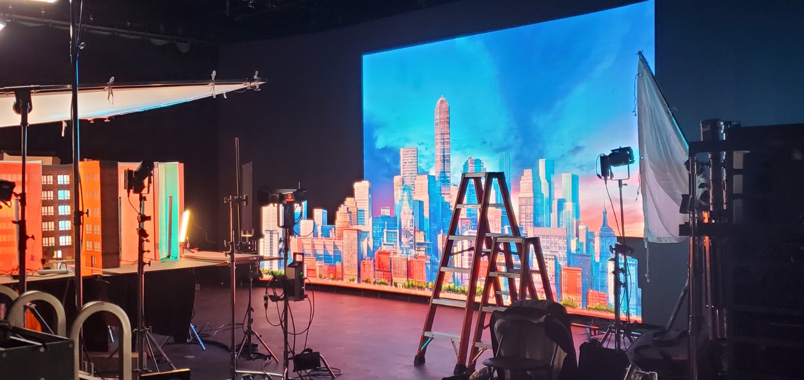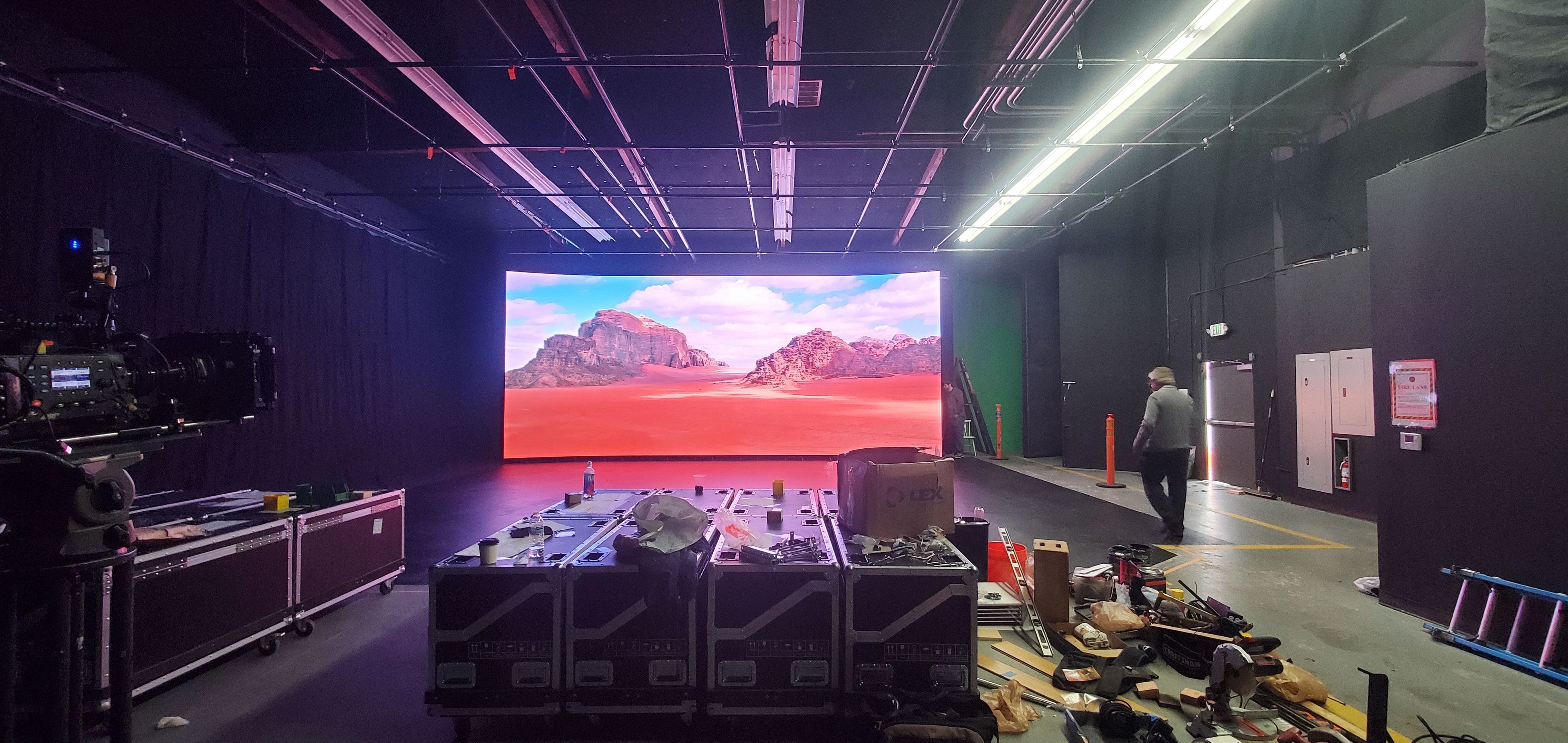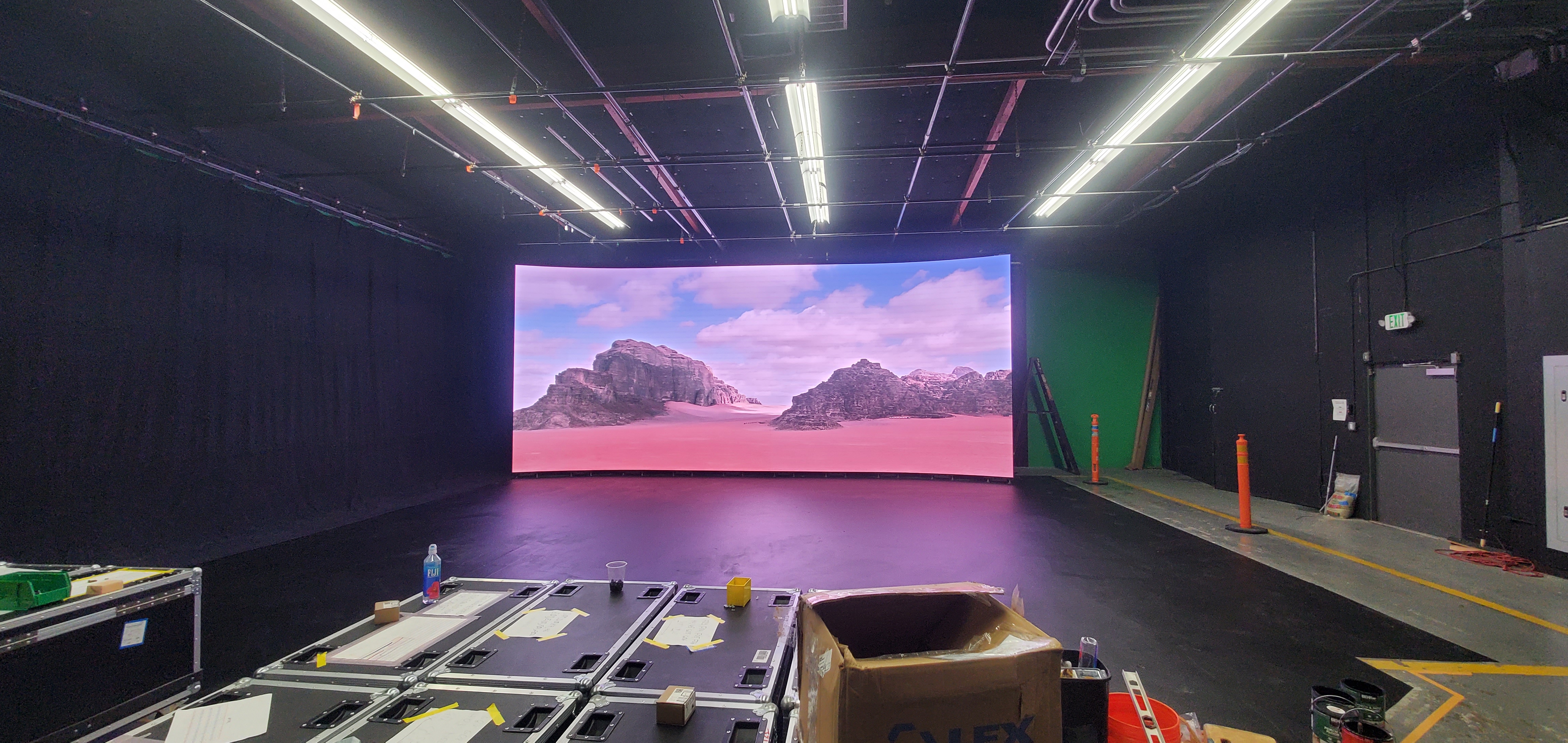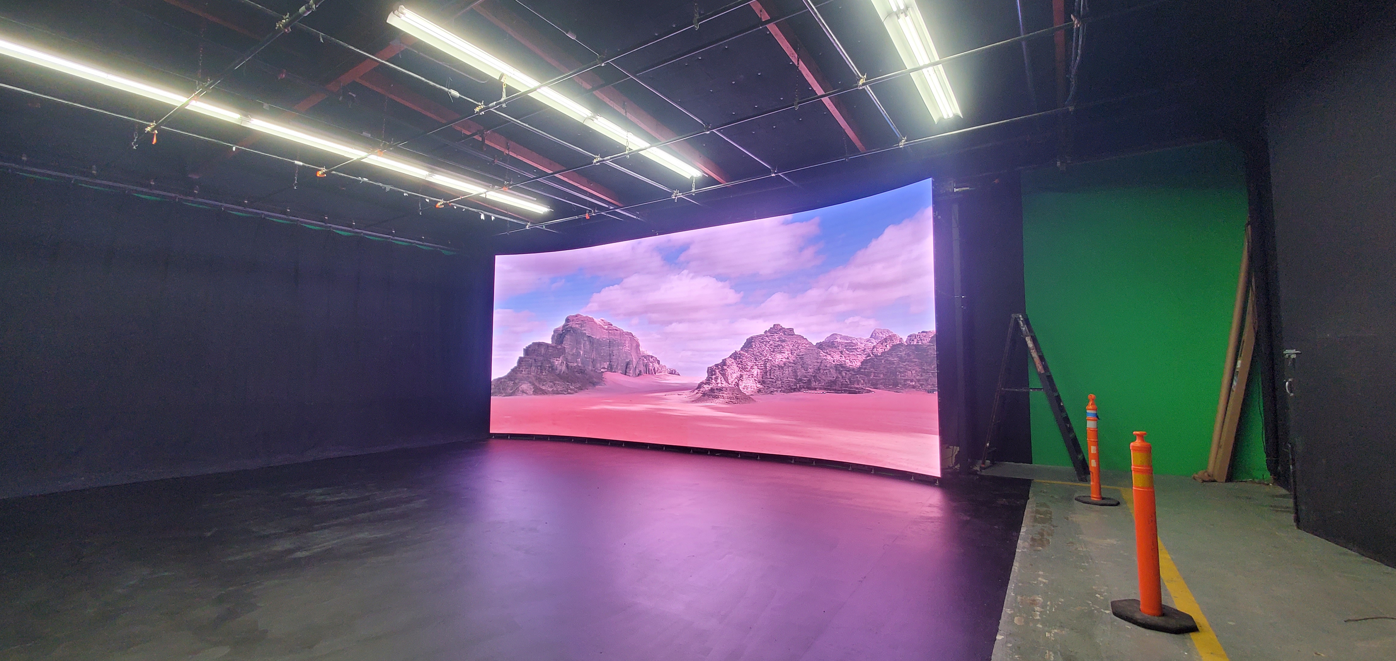 Affordable Sound Stages is offering for rental our new high resolution 30ft panoramic LED video wall. The LED screen is a versatile backdrop and FX solution to cover a wide variety of filming needs. This state-of-the art 4k screen uses LED Technology and serves as a modern alternative to green screen & can be used for in-camera vfx, car commercials, live music performances, streaming virtual festivals, textural product demos, and more.