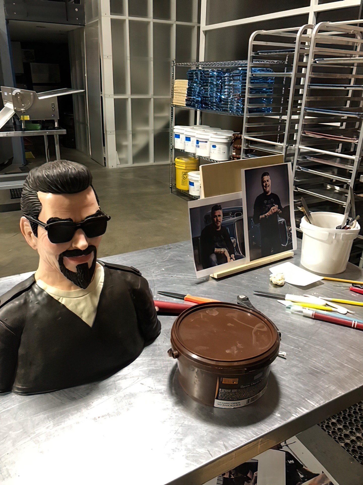 – Hair / Make-up & styling room with styling chairs, wardrobe racks, iron, ironing board