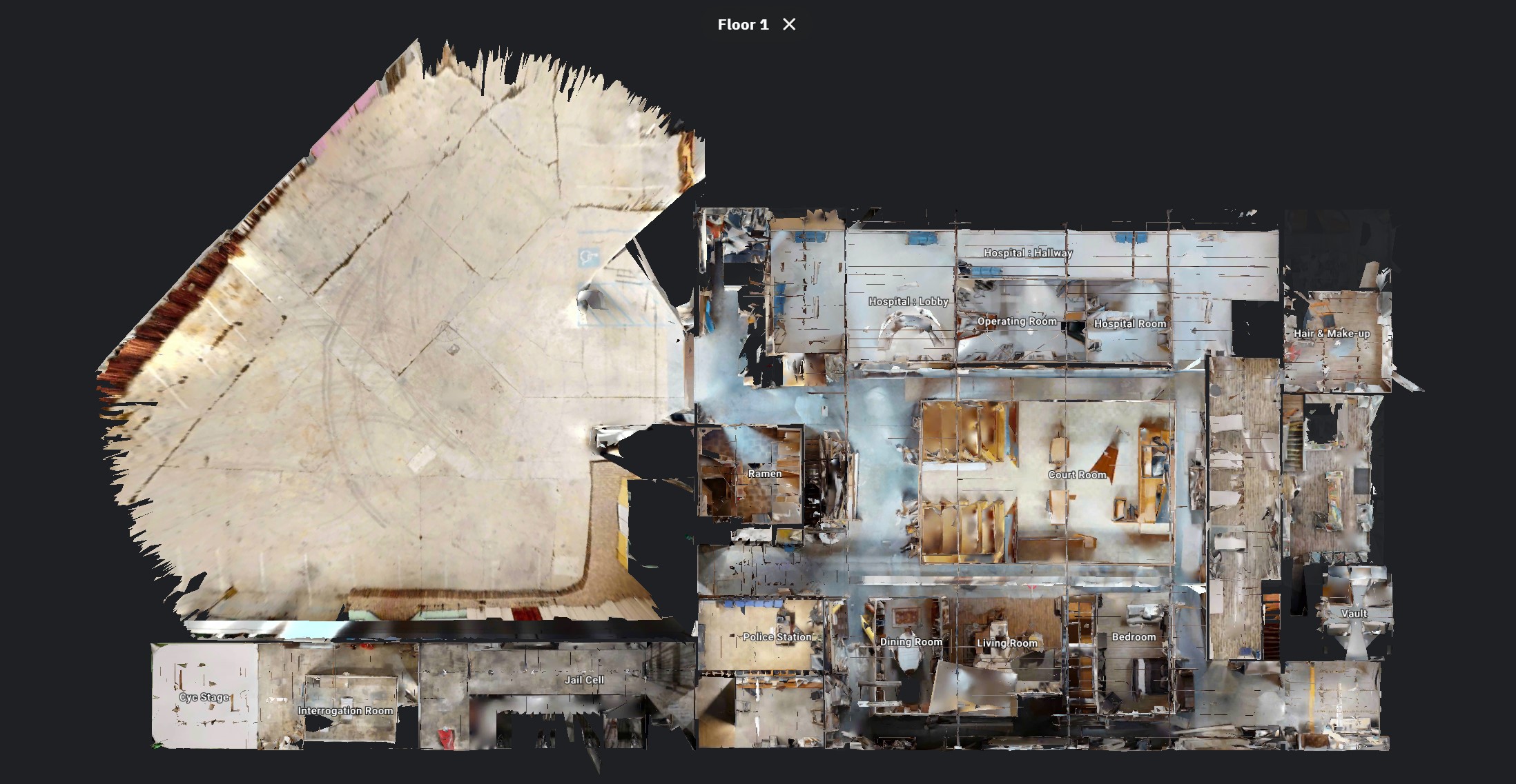 Our standing sets built in June 2018 includes: courtroom, police station, jails, hospital, vault, classroom, living room, bedroom, kitchen, office and lots more.